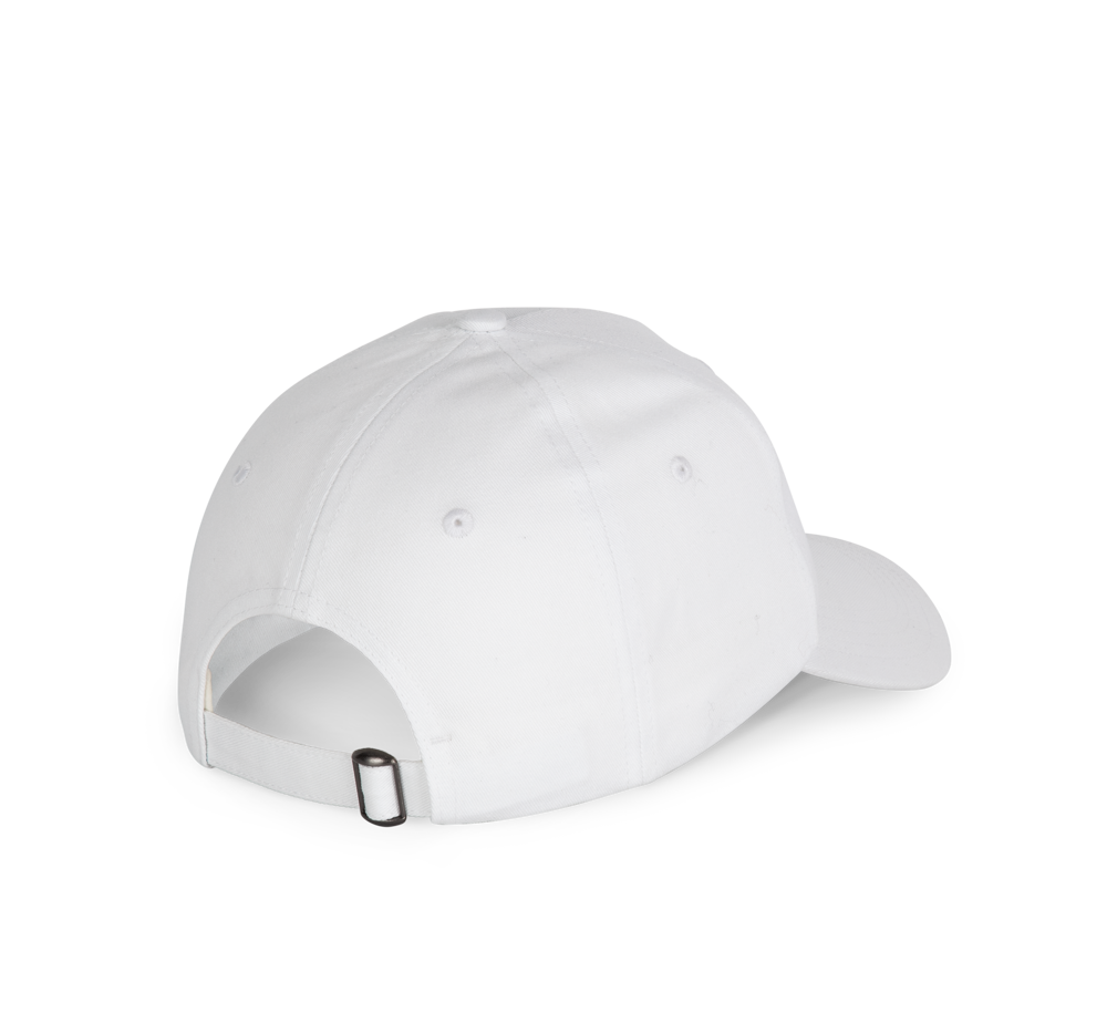 100% katoen. Pet met 5 panelen bestaande uit 60% gerecycled katoen pré-consumer en 40% zuiver katoen. Verstelbare sluiting met metalen gesp.