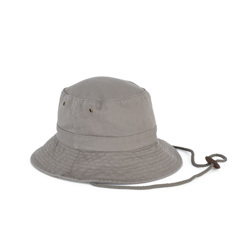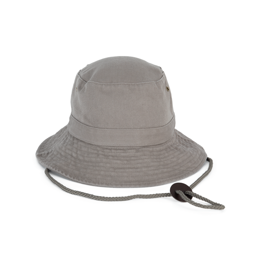 100% zwaar geborsteld katoen twill. Verstevigde rand afgewerkt met overstiksels. 4 metalen verluchtingsgaatjes. Verstelbaar aanrijgkoord met leren stopper.