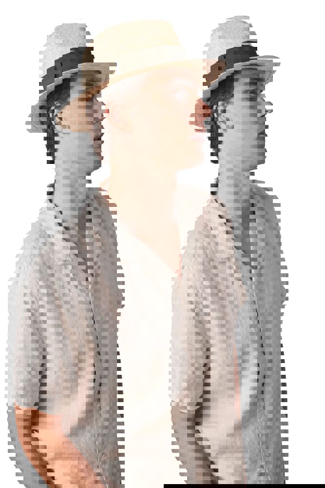 100% Plantaardige vezels. Gevlochten hoed met boord van 7 cm. Kan gecombineerd worden met een gekleurd lint. Lint niet meegeleverd, u dient deze apart te bestellen via artikel KP066B - maat 66 cm is aangepast aan alle maten van de panama hoed.