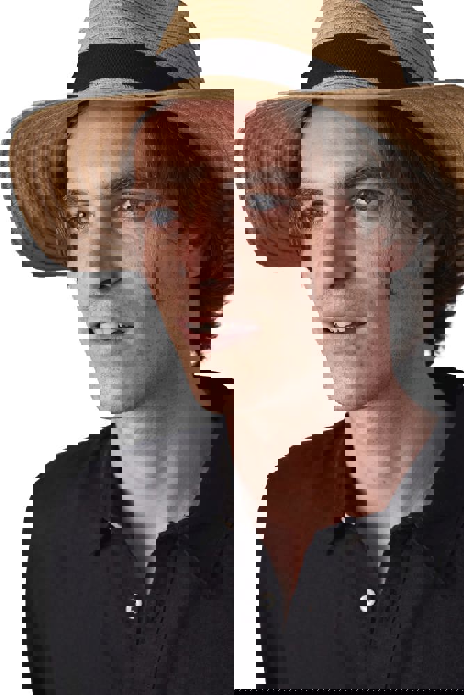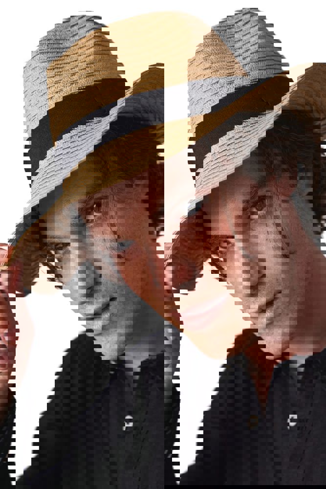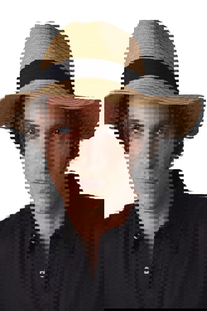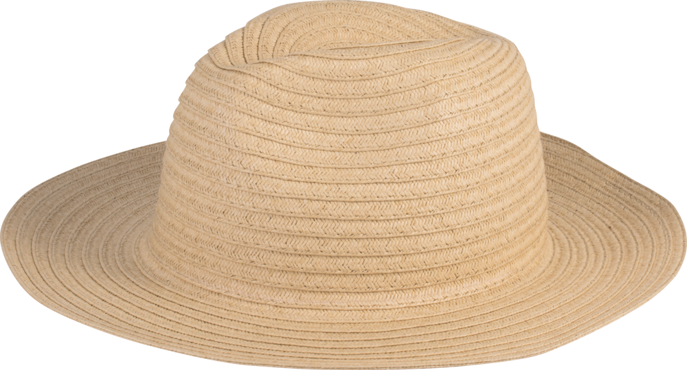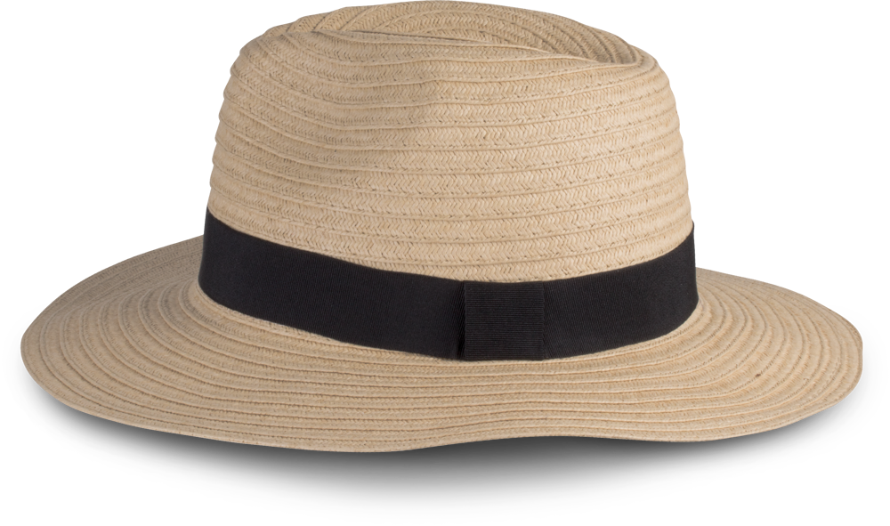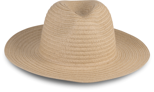 Hoed van plantaardige vezel in Borsalino-stijl met brede boorden van 7 cm. Verkocht zonder lint. Het lint KP609 moet afzonderlijk besteld worden in de juiste maat.