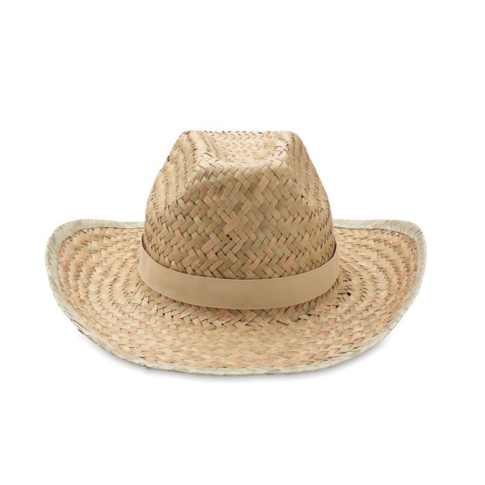 Natuurlijke strohoed in cowboy vorm met polyester band.