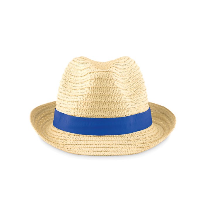 Papieren strohoed. Met polyester band. Bij onbedrukte orders zal de band los meegeleverd worden.