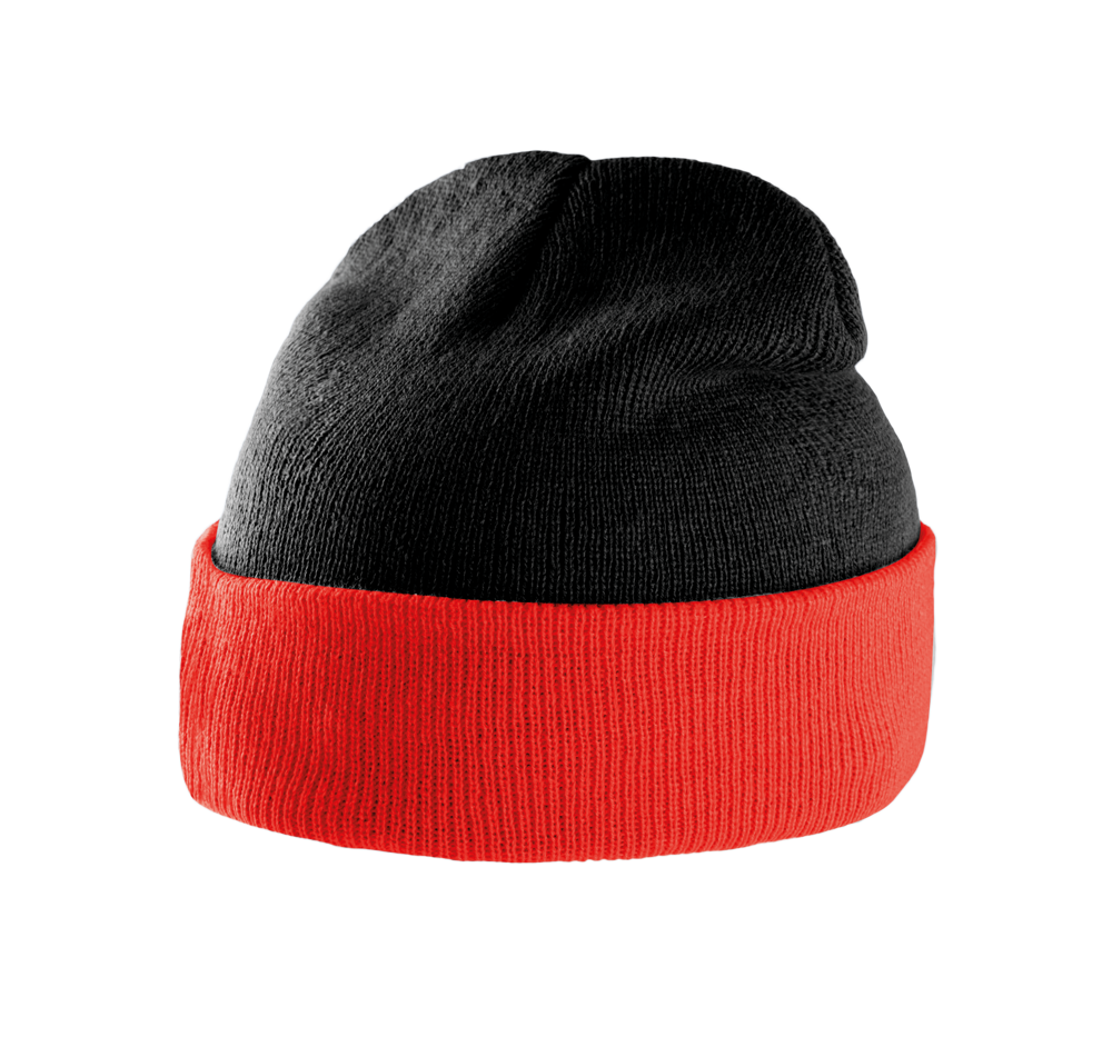 100% acryl. Gebreide muts met omslag in contrastkleur.