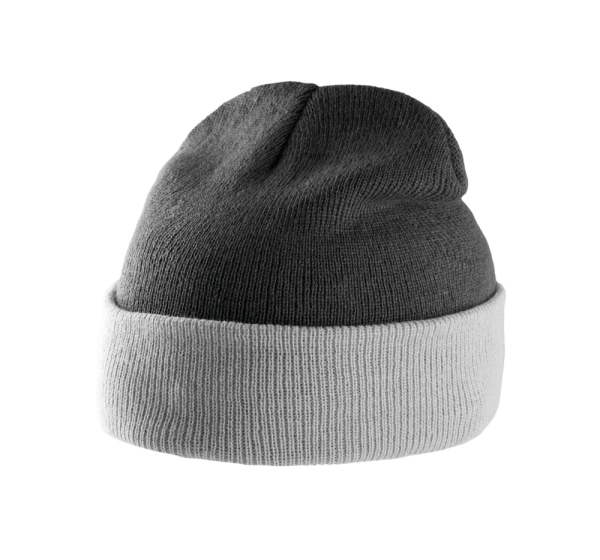 100% acryl. Gebreide muts met omslag in contrastkleur.