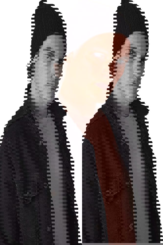 100% acryl. Gebreide muts in rib.