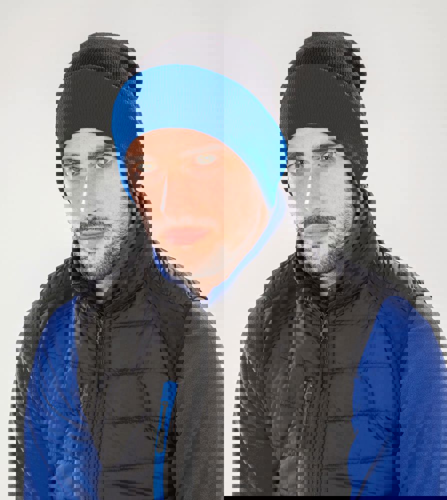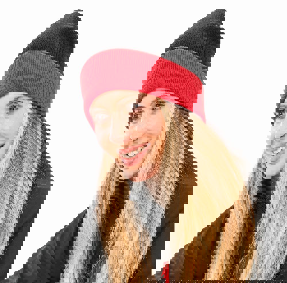 50% gerecycled polyester / 50% polyacryl. Duurzaam kwaliteitsgaren. Gemaakt van petflessen. Sneldrogend (Quick Dry). Muts met omgevouwen boord in contrasterende kleuren. Dubbele dikte.