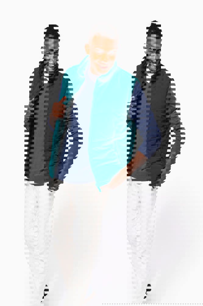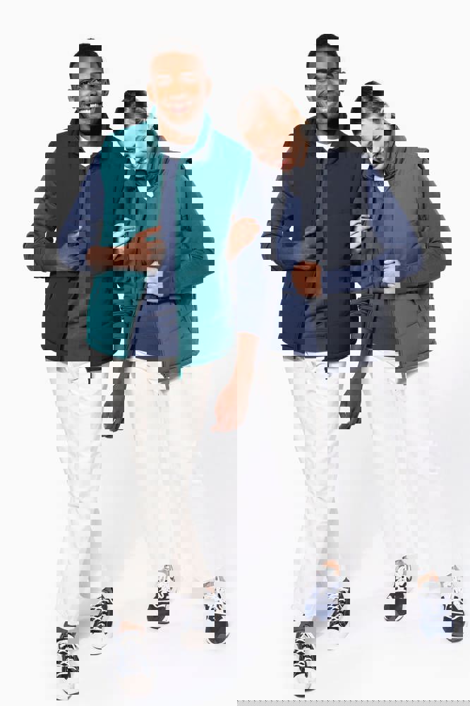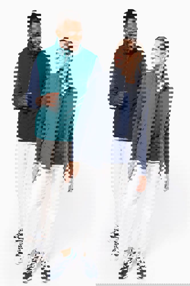 Buitenkant: 100% polyester microvezel. Binnenvoering 100% polyester. Warm en comfortabel. 2 omzoomde zakken met rits aan de buitenkant, 1 binnenzak met klittenbandsluiting. Ritsen, afwerkingen en voeringen toon op toon. 1 rits aan de linkerkant en 1 drukkersrits onderaan.