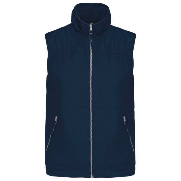 Buitenkant van 100% polyester met PVC inductie. Samengestelde voering van polyamide, polyester en polyesterwatten. Kangoeroezakken met rits aan de voorkant. Ritssluiting. Fleecevoering en wattering aan de bovenzijde en aan de kraag. Polyamidevoering aan de onderzijde. Binnenzak voor GSM. Afgeronde onderkant. Elastisch aanrijgkoord met stopper onderaan. Drukkersrits.