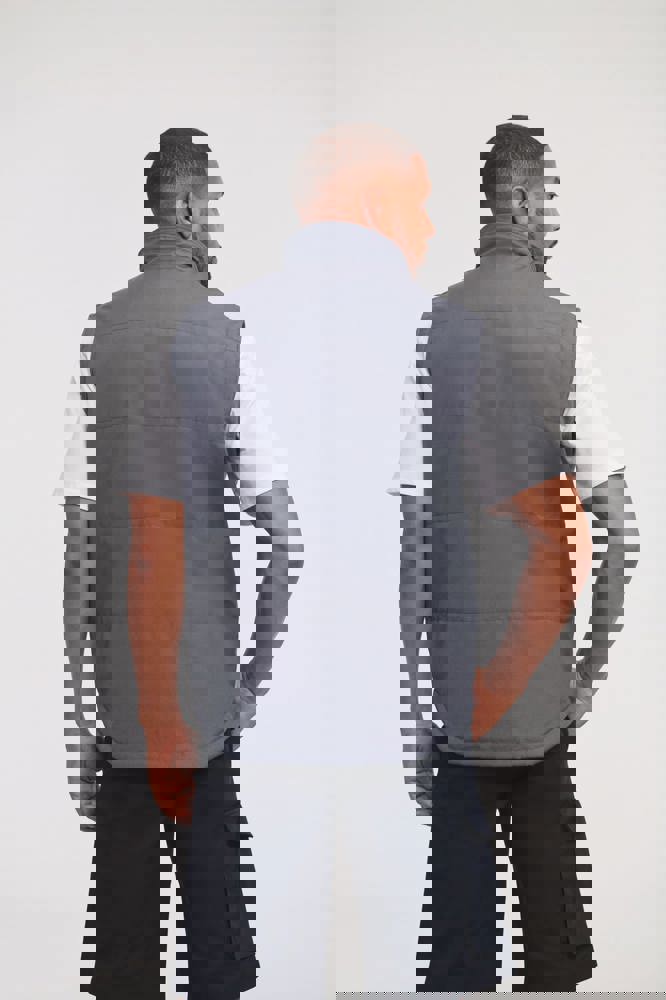 Buitenkant : 65% polyester / 35% canvas katoen. Binnenkant: polyester watten 150 gram en 100% polyester voering. DuPont™ Teflon® coating. Verlengd achterpand voor extra comfort. Voorzakken met ritssluiting en grote A4 binnenzak. Borstzak met mulitvakken rechts. Volledige ritssluiting met stormoverslag. Wasbaar op 60°C en geschikt voor de wasdroger. Drukkersrits ter hoogte van de linkerborst.