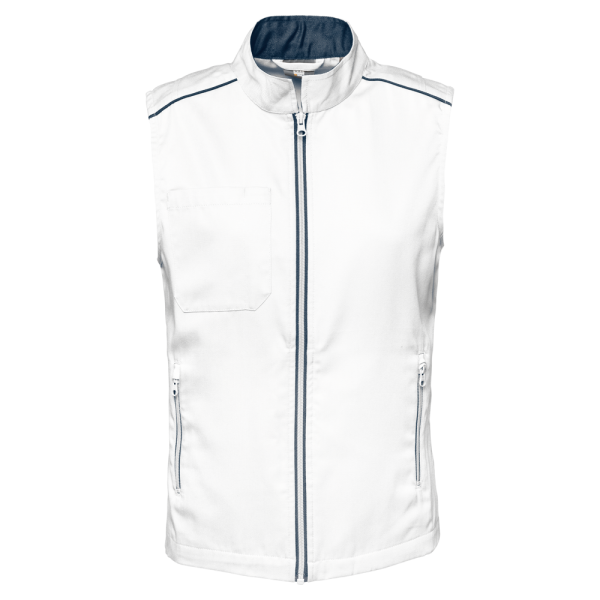 65% polyester / 35% katoen. Wasbaar op 60 °C. 2 ritszakken aan de zijkant. 1 open borstzakje rechts met penhouder. 1 naametiket aan de binnenkant. Ritssluiting op de voorkant en contrasterende zakken. Contrasterende bies op de schouders. Contrasterende binnenkant kraag met ophanglus. 2 ruimtesplitten op de achterkant. Ideaal voor dagelijks gebruik.