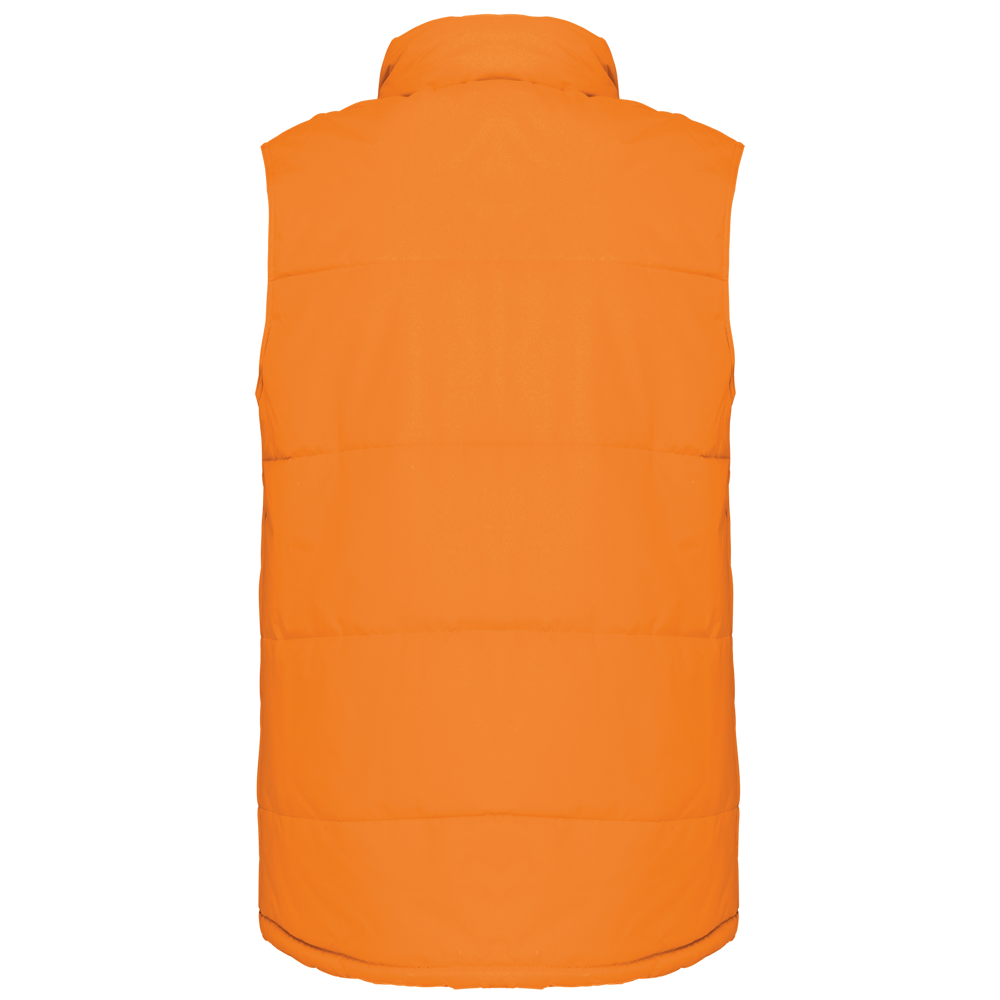100% polyester. Microvezel PVC inductie 1500 mm waterdicht. Voering met 100% polyesterwatten. 4 voorzakken: 2 zakken aan de onderzijde met overslag en klittenbandsluiting, 1 borstzak+ gaatje voor draadje van de koptelefoon, en 1 borstzakje met ristsluiting. 1 binnenzak met rits. Gewatteerde kraag met ruimte voor het draadje van de koptelefoon. Aanrijgkoord aan de onderkant van de bodywarmer. Plastic zilverkleurige ritssluiting. Drukkersrits.