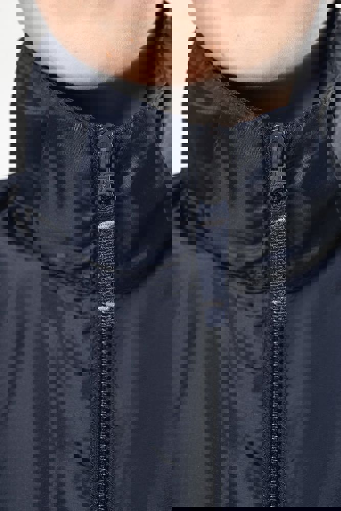 100% polyester. Toon op toon ritssluiting. Capuchon in de kraag met klittenbandsluiting. 2...meer