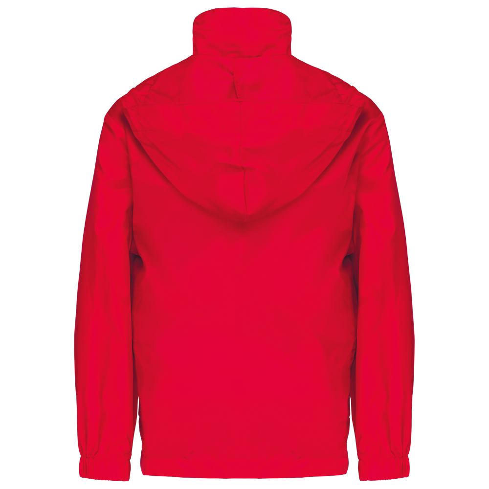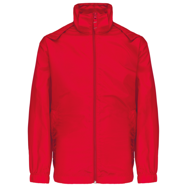 100% polyester. Toon op toon ritssluiting. Capuchon in de kraag met klittenbandsluiting. 2 voorzakken met ritssluiting. Elastische mouwuiteinden. Opvouwbaar volgens het K-Way® systeem.