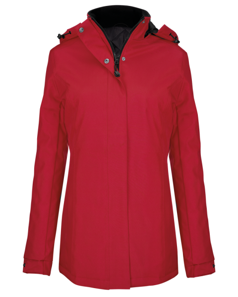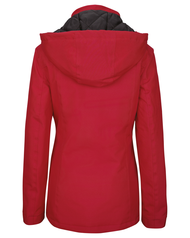 Buitenkant: 100% oxford polyester. Binnenkant: gewatteerde polyester. Ritssluiting met overslag en onzichtbare drukknopen. 2 ritszakken aan de buitenkant. 1 binnenzak. Afneembare capuchon. Kraag met fleecevoering. Drukkersrits.