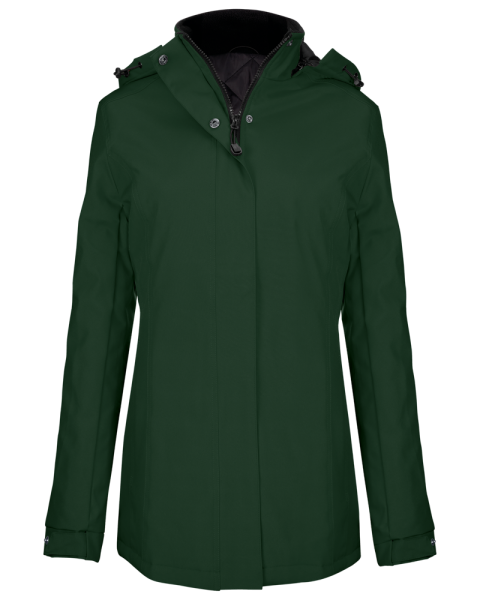 Buitenkant: 100% oxford polyester. Binnenkant: gewatteerde polyester. Ritssluiting met overslag en onzichtbare drukknopen. 2 ritszakken aan de buitenkant. 1 binnenzak. Afneembare capuchon. Kraag met fleecevoering. Drukkersrits.