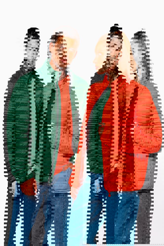 Buitenkant : 100% polyamide. Marl Silver : 70% polyester/ 30%polyamide. Marl Dark Grey : 70% polyamide / 30% polyester. Polyester binnenvoering. Warm en ultralicht. Samenpersbaar in de opbergtas. 2 voorzakken met rits. Contrasterende binnenzijde: Convoy Grey voor Black, Red, Marl Dark Grey en Marl Silver; Navy voor Light Royal Blue, Mineral Green, Dark Khaki en Wine; Black voor Forest Green; Dark Khaki voor Jungle Camo. Toon-op-toon interieur: Burnt Ochre voor Burnt Ochre; Navy voor Navy; White voor White. Geïnjecteerde vulling: het gewicht kan variëren afhankelijk van de zones van het kledingstuk. Het totaalgewicht is indicatief.