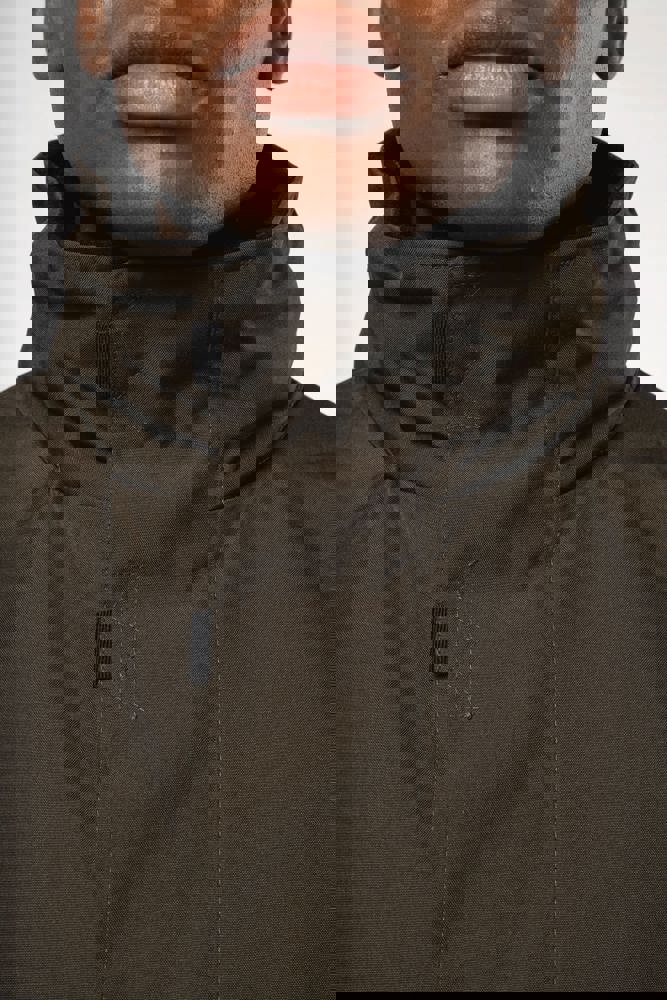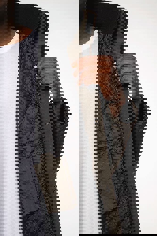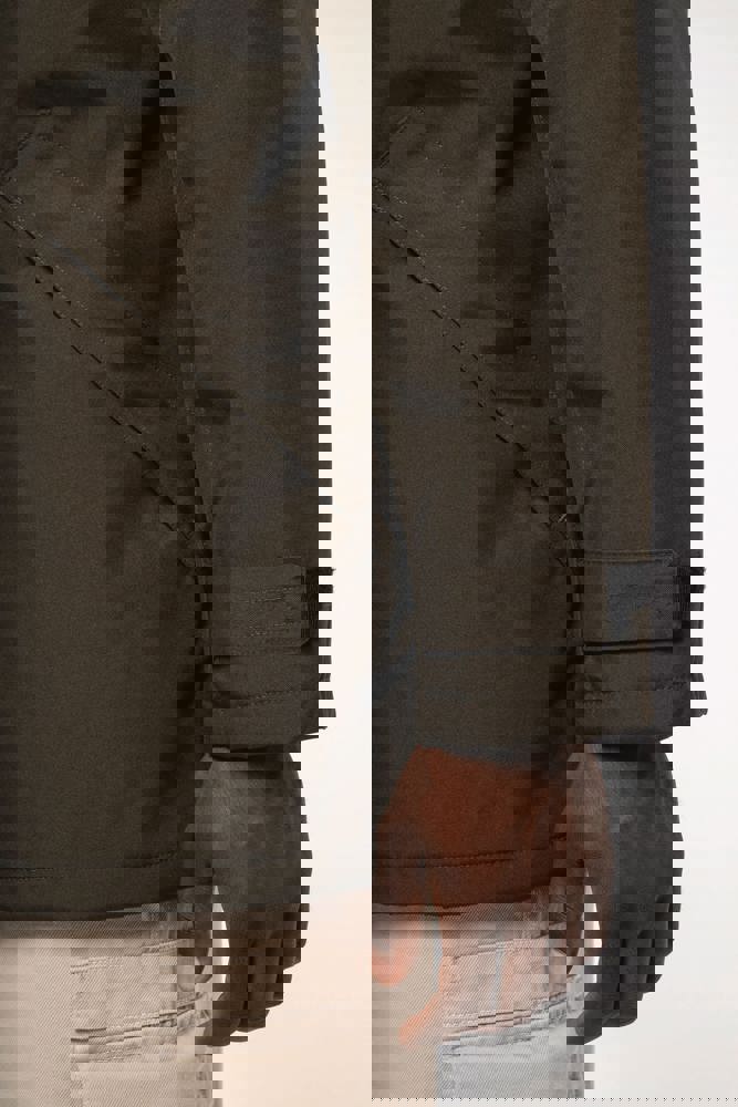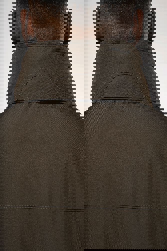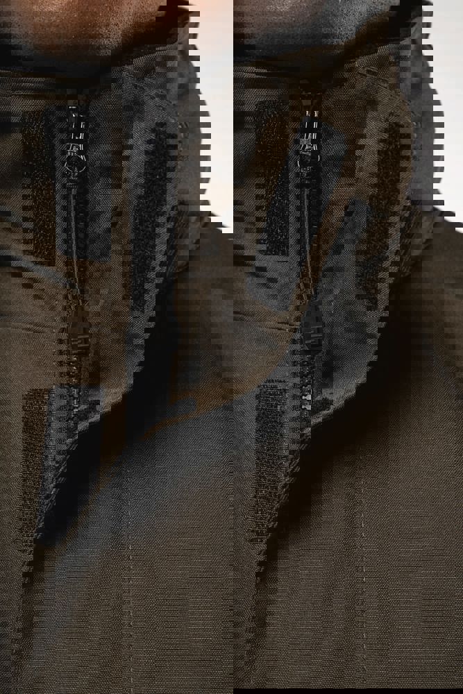 Buitenkant: 100% oxford polyester. Binnenkant: gewatteerd polyester. 2 voorzakken met rits. 2 binnenzakken waarvan 1 voor de GSM. Capuchon verborgen in de kraag. Kraag met fleecevoering. Drukkersrits. Ritssluiting verborgen onder een lijst met drukknopen en klittenband. Verstelbare mouwuiteinden met klittenband.