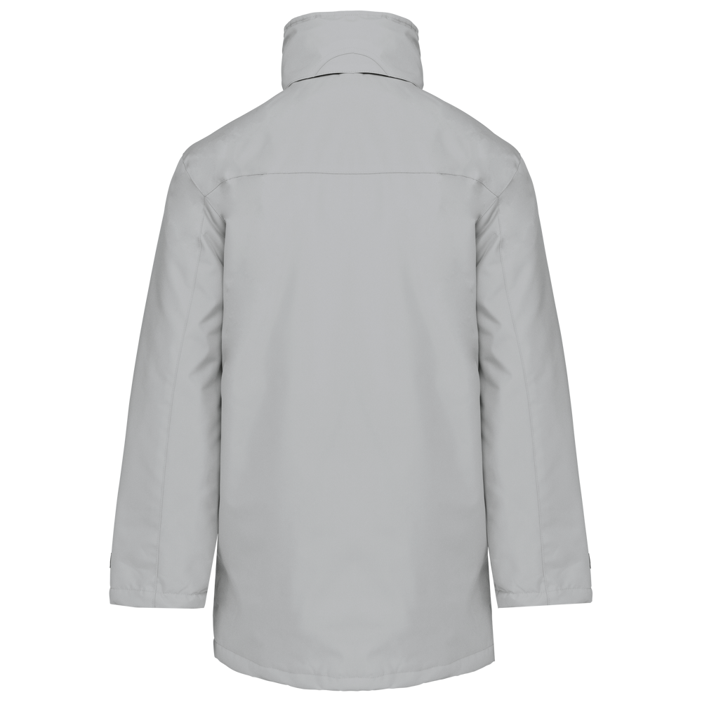 Buitenkant: 100% oxford polyester. Binnenkant: gewatteerd polyester. 2 voorzakken met rits. 2 binnenzakken waarvan 1 voor de GSM. Capuchon verborgen in de kraag. Kraag met fleecevoering. Drukkersrits. Ritssluiting verborgen onder een lijst met drukknopen en klittenband. Verstelbare mouwuiteinden met klittenband.