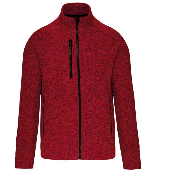 Geborstelde binnentricot 100% polyester. Raglanmouwen. Ritssluiting. 2 contrasterende ritszakken aan de voorkant en 1 contrasterende borstzak met rits. Overlocksteek op de inzetstukken. Heel comfortabele snit en stof.