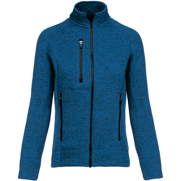Geborstelde binnentricot 100% polyester. Raglanmouwen. Ritssluiting. 2 contrasterende ritszakken aan de voorkant en 1 contrasterende borstzak met rits. Overlocksteek op de inzetstukken. Heel comfortabele snit en stof.