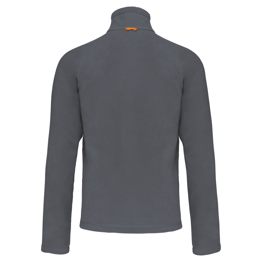100% polyester microfleece met anti-pilling behandeling. Raglan mouwen. Ritssluiting. 2 voorzakken met rits. 2 binnenzakken. Aanrijgkoord. Afwerkingsbiesjes aan de binnenzakken en bandje rond de hals in contrastkleur.