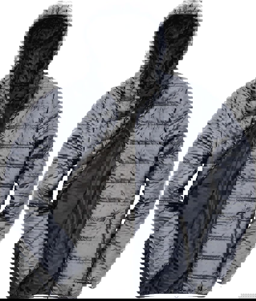 100% polyester, winddicht en waterafstotend. Zeer zacht, licht en warm. Binnenvoering, contrasterende afwerkingen en ritssluiting. Biesje aan mouw- en jasboorden. Reflecterende stroken aan de zijkant. Capuchon in het verlengde van de kraag. Ritszakken. Ophanglus. Eenvoudig op te bergen en compact. Drukkersrits. Wassen op 60 °C.