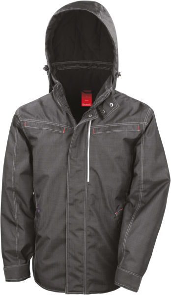 Parka buitenzijde 100% polyester 170g/m², gedeeltelijk gevoerd in 100% polyesterfleece, met vulling 230 g/m². Parka-windbreaker, waterdicht 3000 mm met thermogelaste naden en ademend 2000 g/m²/24 u. Polartherm fleecevoering. Ritssluiting in 2 richtingen met meegeleverde, verwisselbare gekleurde schuivers. 4 ritszakken aan de buitenkant en 2 ritszakken aan de binnenkant. D-vormige ring in de borstzak links. Opstaande kraag en afneembare capuchon. Langer rugpand, verstelbaar aan de onderkant. Regelbare mouwuiteinden met klittenband. Stormoverslag met drukknopen. Contrasterende en versterkte naden en reflecterende details. Ophanglusje in de kraag genaaid.