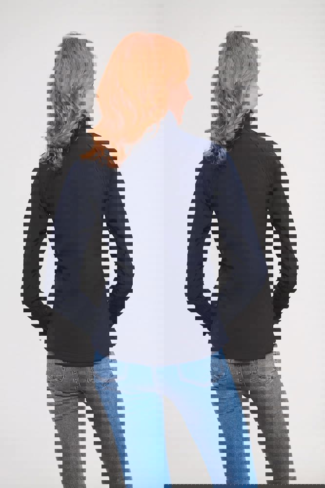 92% polyester / 8% elasthan. Getaileerde snit. Drie-laagse softshell met ademend membraan en microfleece voering, waterdicht t/m 5.000mm. Winddicht. 2 gevoerde zijzakken en 1 gevoerde borstzak allen met ritssluiting en ritstrekker. Volledige ritssluiting met stormoverslag aan de binnenkant en ritsbeschermer aan de kraag. Elastisch aanrijgkoord onderaan. Verstelbare mouwuiteinden. Langer achterpand. Wasbaar op 40°C zonder wasverzachter en op een lage temperatuur drogen.