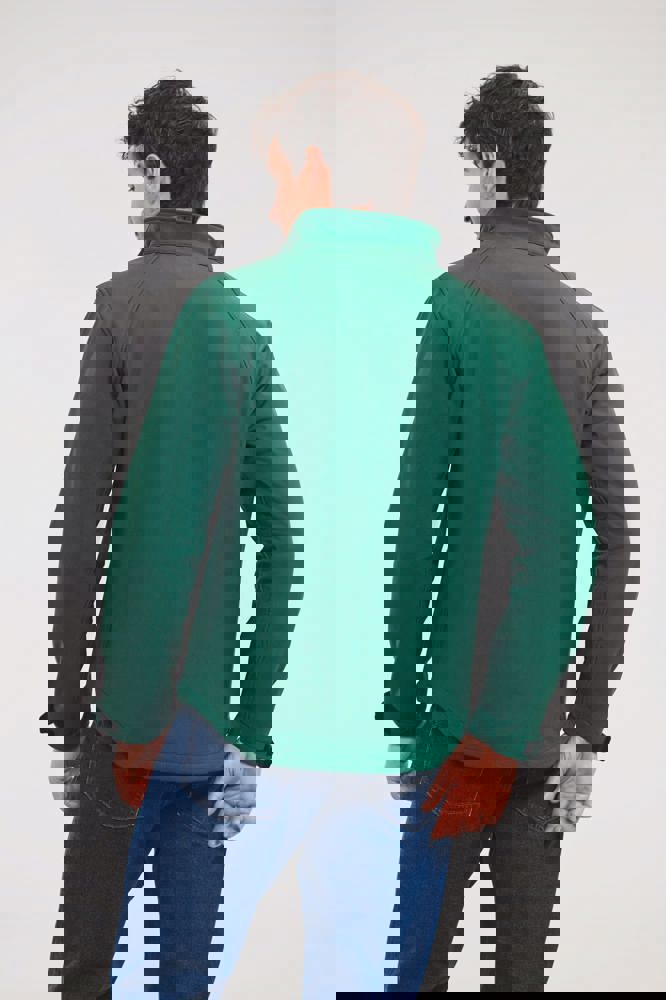 92% polyester / 8% elasthan. Drie-laagse softshell met ademend membraan en microfleece voering, waterdicht t/m 5.000mm. Winddicht. 2 gevoerde zijzakken en 1 gevoerde borstzak allen met ritssluiting en ritstrekker. Volledige ritssluiting met stormoverslag aan de binnenkant en ritsbeschermer aan de kraag. Elastisch aanrijgkoord onderaan. Verstelbare mouwuiteinden. Langer achterpand. Wasbaar op 40°C zonder wasverzachter en op een lage temperatuur drogen.