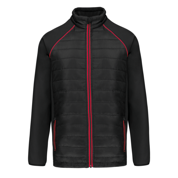 100% polyester. Softshell 2 lagen, in de 4 richtingen rekbare stof voor meer bewegingsruimte en met binnenlaag in fleece voor meer warmte op de mouwen en de schouders. Voorkant en achterkant : 100% polyester 75 g taf 230T met coating. Waterafstotende stof. 2 ritszakken aan de voorkant. 1 naametiket links aan de binnenkant. Contrasterende bies aan de mouwopeningen en in de kraag. Ritssluiting op de voorkant en contrasterende zakken. Blinde drukkersrits onderaan. Ideaal voor dagelijks gebruik.