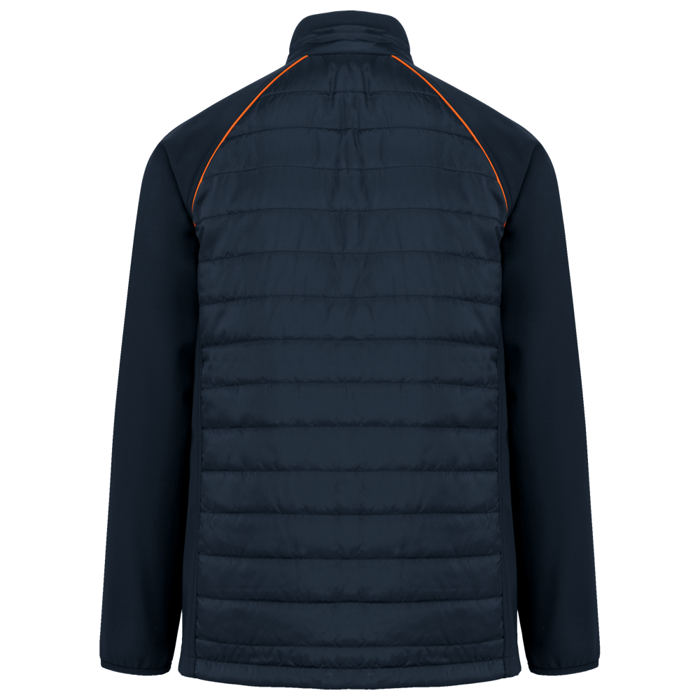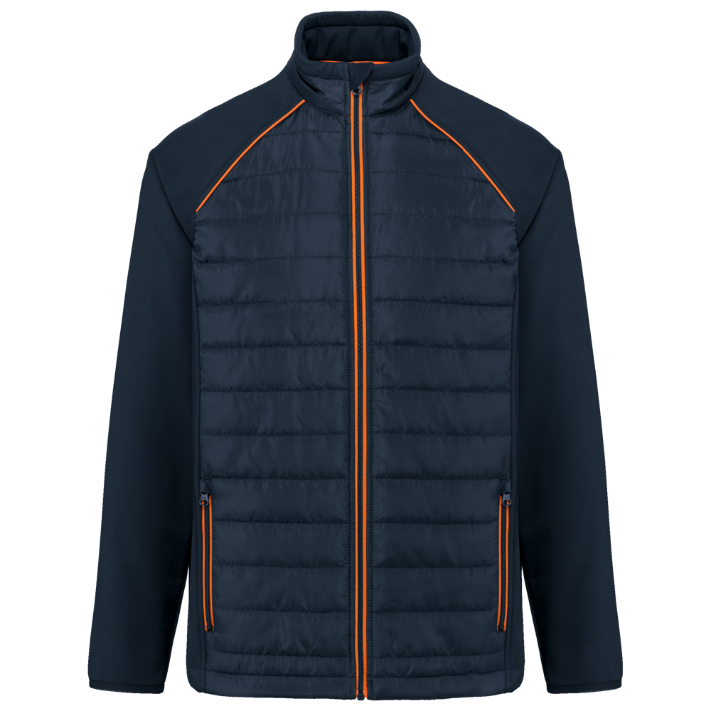 100% polyester. Softshell 2 lagen, in de 4 richtingen rekbare stof voor meer bewegingsruimte en met binnenlaag in fleece voor meer warmte op de mouwen en de schouders. Voorkant en achterkant : 100% polyester 75 g taf 230T met coating. Waterafstotende stof. 2 ritszakken aan de voorkant. 1 naametiket links aan de binnenkant. Contrasterende bies aan de mouwopeningen en in de kraag. Ritssluiting op de voorkant en contrasterende zakken. Blinde drukkersrits onderaan. Ideaal voor dagelijks gebruik.