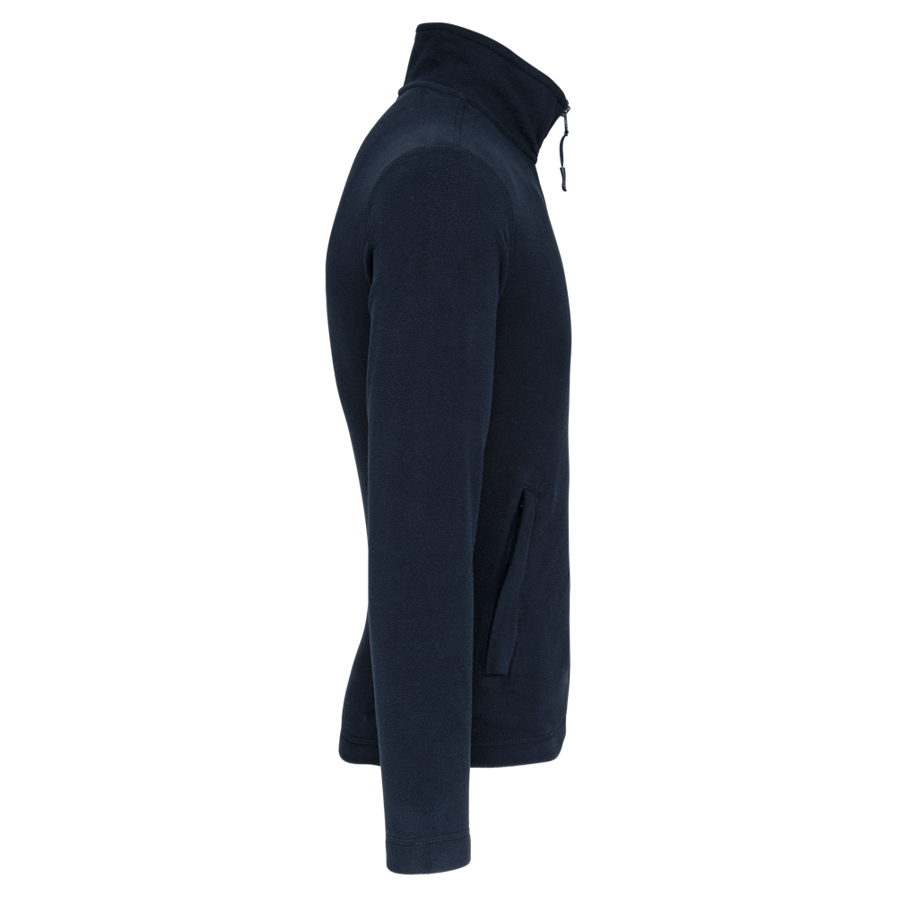 100% polyester. Polyester anti-pilling microfleece. 2 voorzakken met rits.