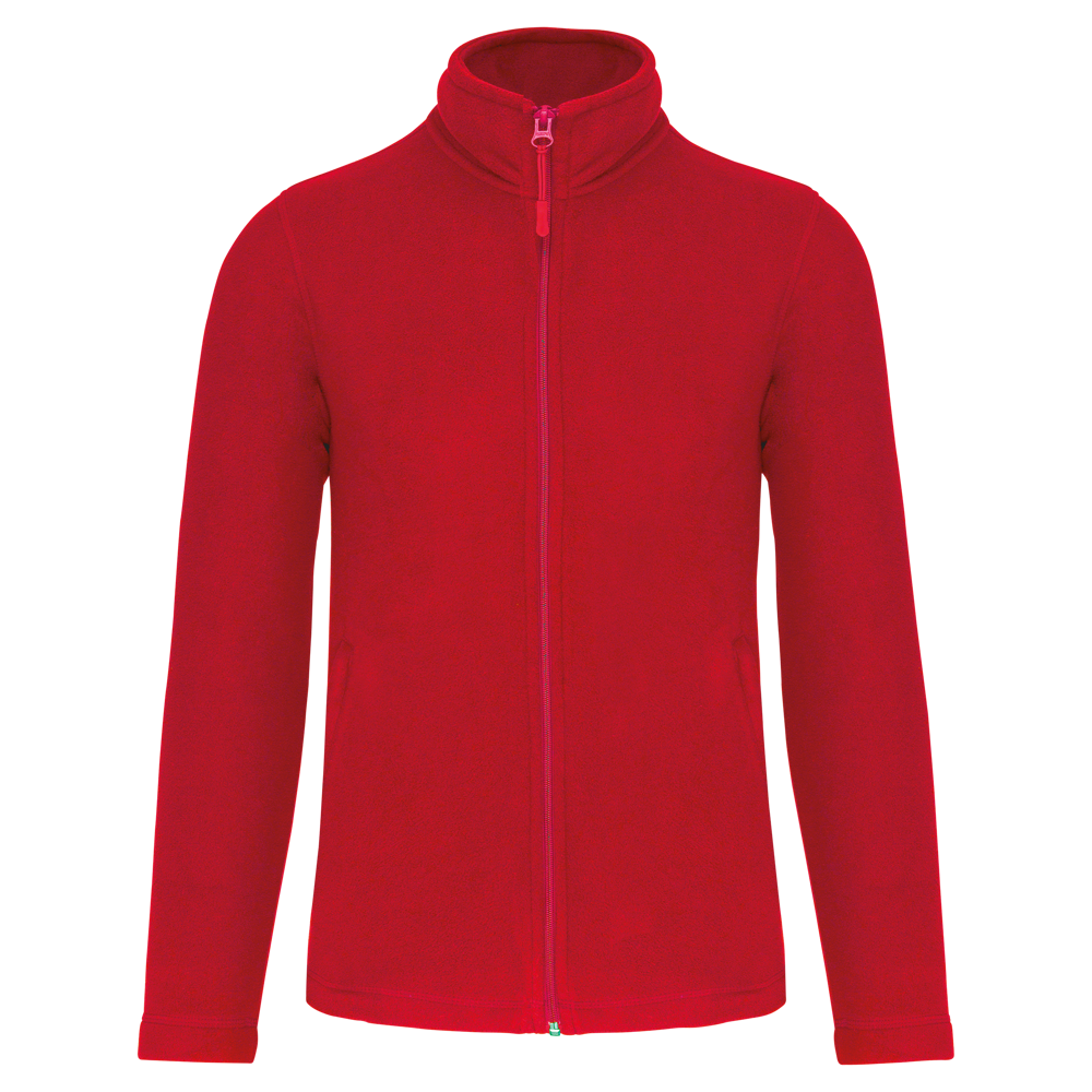 100% polyester. Polyester anti-pilling microfleece. 2 voorzakken met rits.