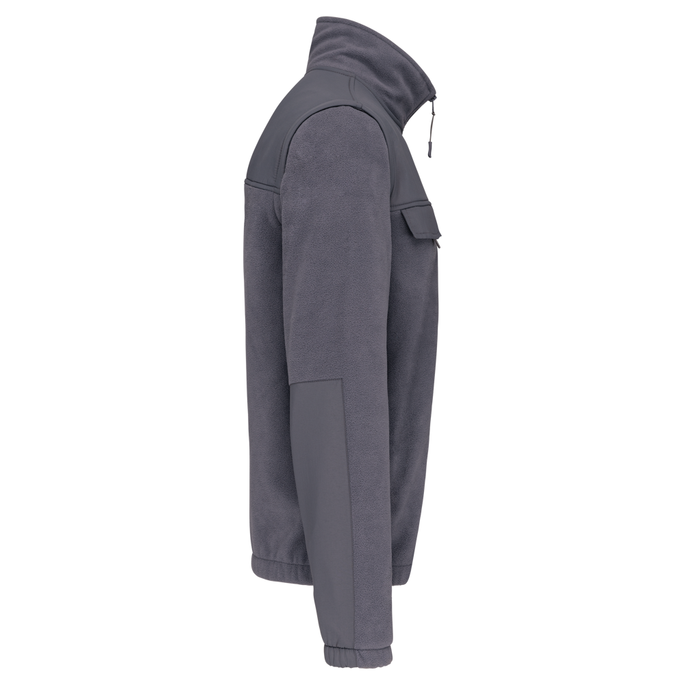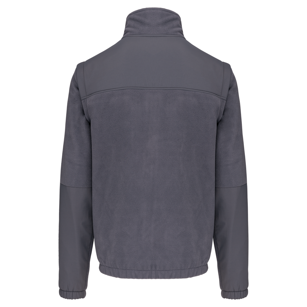 100% polyester. Buitenkant: fleece 100% polyester 400 g/m². Versteviging 100% polyester taslon met acrylcoating. Voering binnenkant mouwen polyester 210T. 2-in-1-fleecejas. 2 ritszakken aan de voorkant en 1 borstzak met klep en klittenband. Toon op toon inzetstukken aan de voor- en achterkant en onderarmen. Eenvoudige personalisatie voor- en achteraan. Afneembare mouwen met voering van polyester, voor meer comfort. Elastische mouw- en jasboorden.