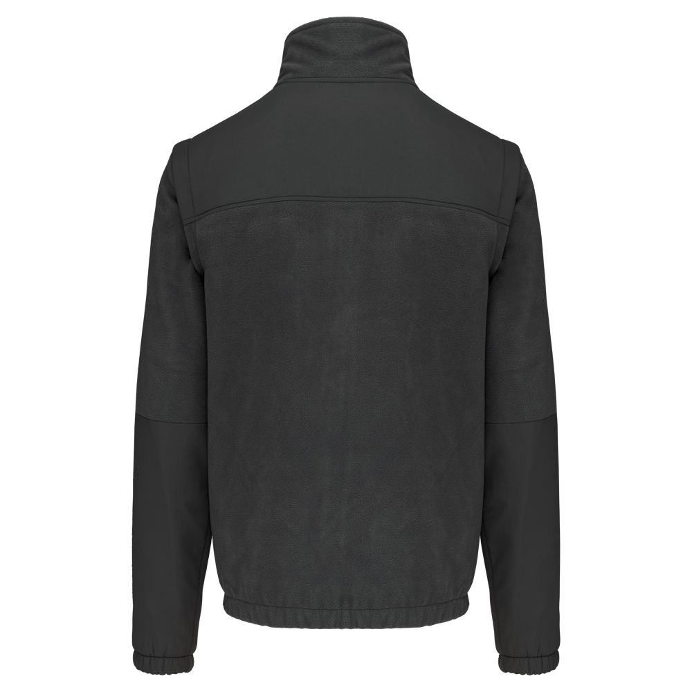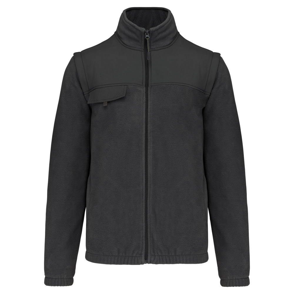 100% polyester. Buitenkant: fleece 100% polyester 400 g/m². Versteviging 100% polyester taslon met acrylcoating. Voering binnenkant mouwen polyester 210T. 2-in-1-fleecejas. 2 ritszakken aan de voorkant en 1 borstzak met klep en klittenband. Toon op toon inzetstukken aan de voor- en achterkant en onderarmen. Eenvoudige personalisatie voor- en achteraan. Afneembare mouwen met voering van polyester, voor meer comfort. Elastische mouw- en jasboorden.