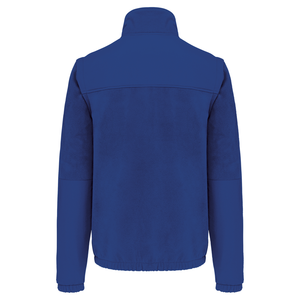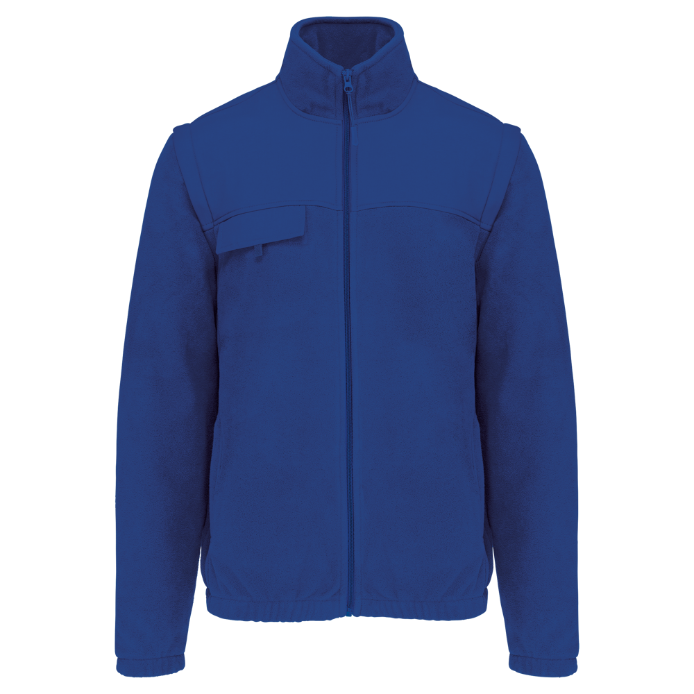100% polyester. Buitenkant: fleece 100% polyester 400 g/m². Versteviging 100% polyester taslon met acrylcoating. Voering binnenkant mouwen polyester 210T. 2-in-1-fleecejas. 2 ritszakken aan de voorkant en 1 borstzak met klep en klittenband. Toon op toon inzetstukken aan de voor- en achterkant en onderarmen. Eenvoudige personalisatie voor- en achteraan. Afneembare mouwen met voering van polyester, voor meer comfort. Elastische mouw- en jasboorden.