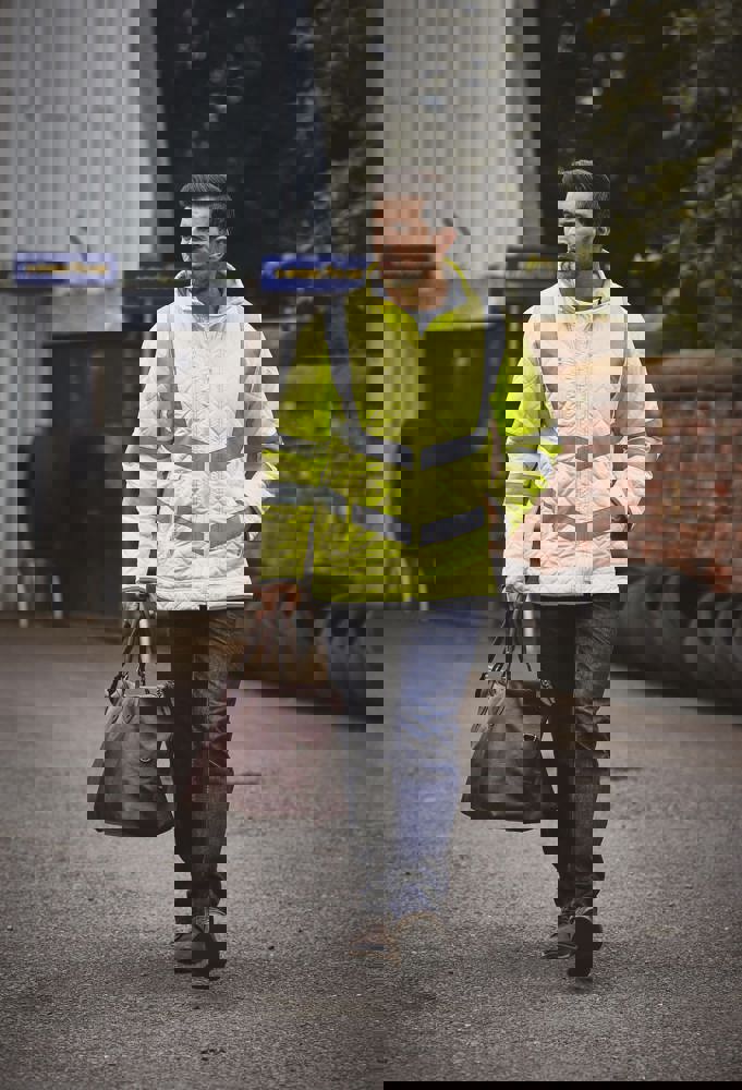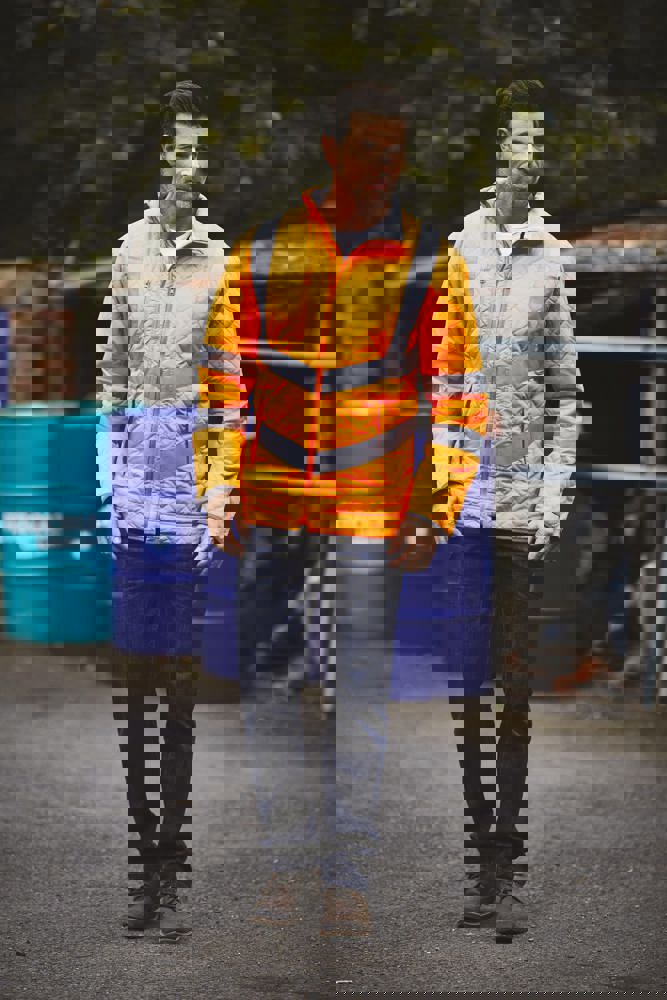 100% waterafstotend polyester, met fleecevoering en wattering in 100% polyester. 2 reflecterende v-vormige stroken (5 cm breed) op het lichaam en de armen, voor een betere zichtbaarheid. Opstaande kraag met ingewerkte kinbescherming. Borstzakje met rits. 2 handverwarmende ritszakken opzij. 1 opgenaaide zak in de vaste fleecevoering. Reflecterende biesjes onderaan de mouwen en het kledingstuk. Blinde drukkersrits onderaan het kledingstuk (binnenkant). Conform aan de norm EN ISO 20471:2013 van klasse 3 (enkel kleuren Hi-Vis Yellow en Hi-Vis Orange) en aan de norm inzake signalisatiekledij van de spoorwegen UK GO/RT 3279 Issue 8:2013 (enkel Hi-Vis Orange).