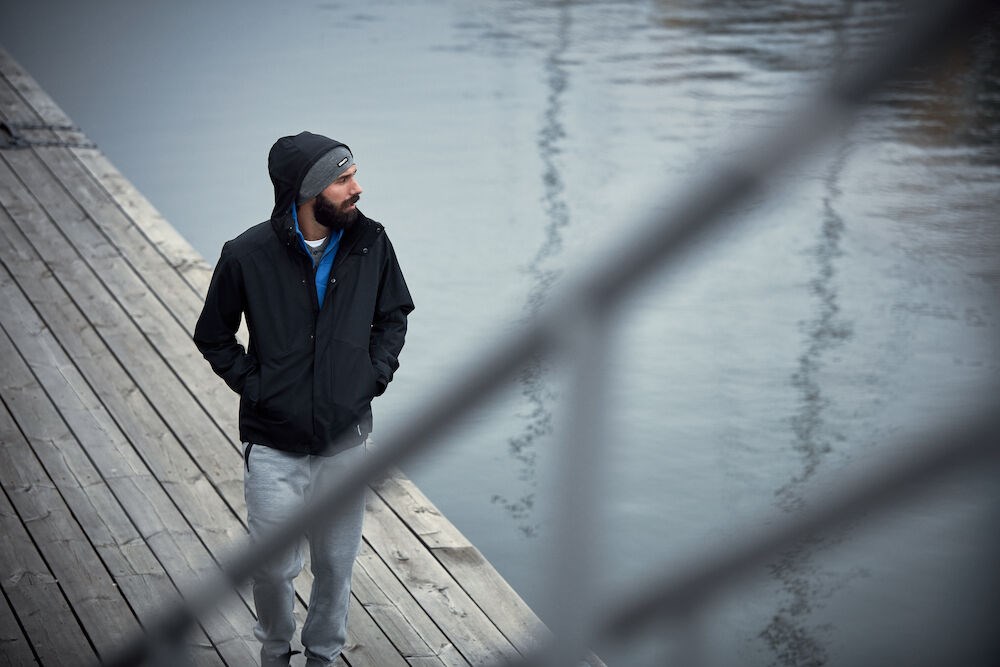 Modern shell jacket with high collar and detachable hood. Blurring the lines between alpine attitudes and urban expressions, Mountain Jacket feels just as home in the streets as on the slopes and in the backcountry. Soft, wind- and waterproof fabric ensure great weather protection and comfort. In addition, the jacket comes with two zip pockets, inner zip pocket, ski-pass pocket at sleeve and detachable hood. The jacket also features pre-shaped sleeves for optimal fit and jersey cuffs with thumbholes for extra comfort. Available in black mélange and grey-blue mélange. • Wind- and waterproof fabric (WP 10,000/MVP 10,000) • Bonded details for a stylish appearance • Two zip hand pockets • Ski-pass pocket at sleeve • Inner zip pocket • Reflective piping at hood • Detachable and adjustable hood • Jersey cuff with thumbholes • Draw cord at bottom hem • Taped shoulder seams