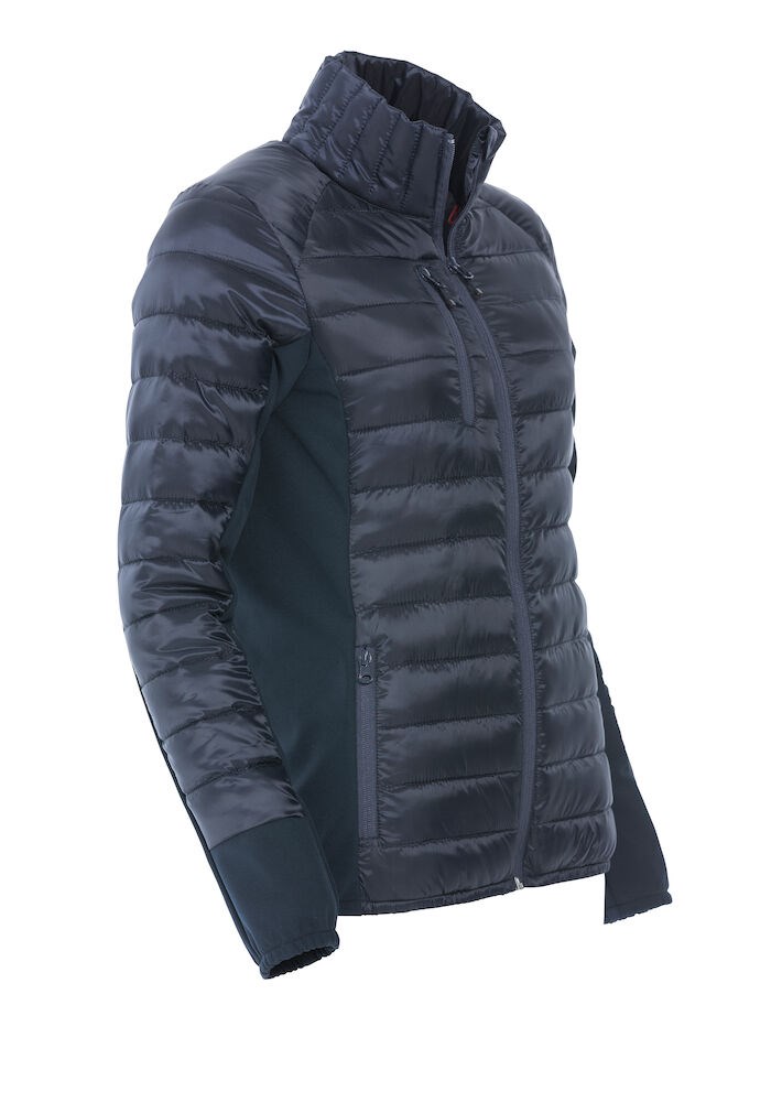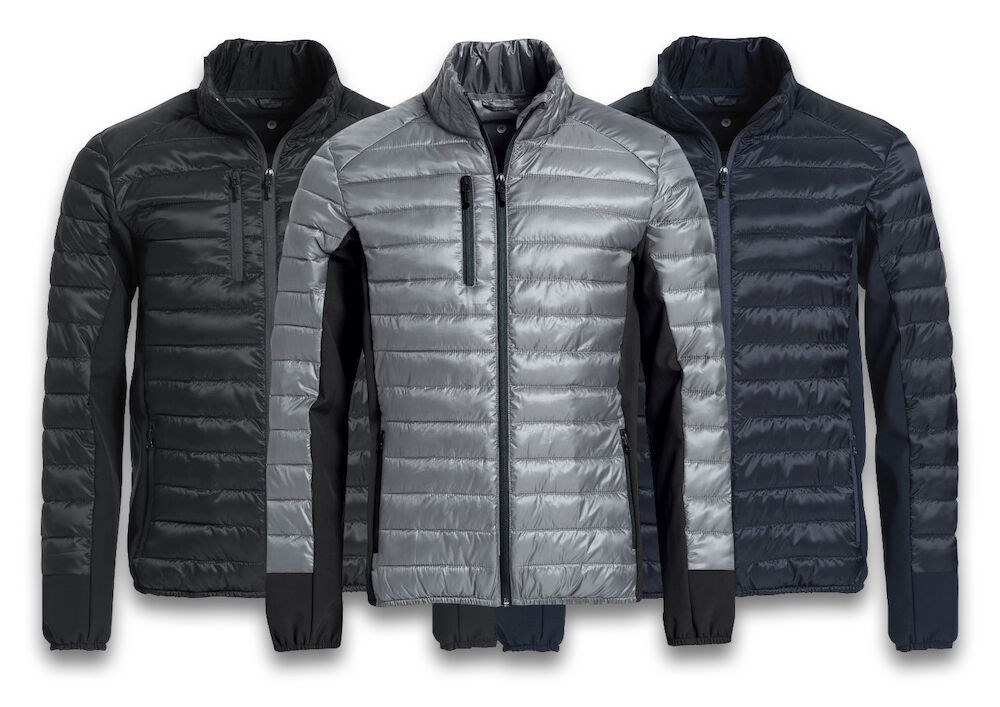 Opvallende gewatteerde jas met eigentijds design en een moderne pasvorm. De jas is zorgvuldig afgewerkt met elastiek in de boord en onderaan de mouwen, zijpanelen van softshell, necktape en ritsen. De jas is voorzien van twee steekzakken met rits, een borstzak met rits en binnenzakken. Deze moderne jas zorgt voor een professionele en eigentijdse uitstraling. Ideaal voor degene die op subtiele wijze op wil vallen.