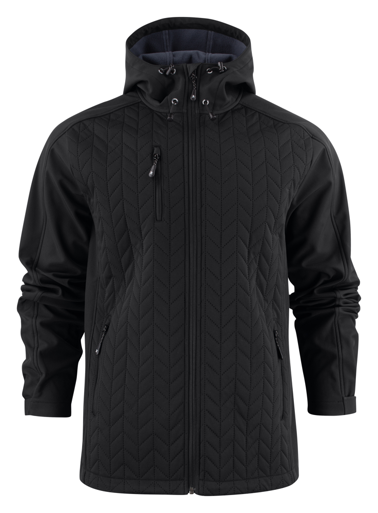Wind- en waterafstotende hybride jas in twee materialen met groot ademend vermogen. Softshell aan de mouwen, juk en capuchon en gequilte interlock op de torso met aan de binnenzijde microfleece. Waterafstotende C6 afwerking. De capuchon en de zoom onderaan zijn aanpasbaar met de elastische trekkoorden. Binnenzak met ritssluiting en voorzakken met meshvoering die bijdragen aan extra ventilatie.