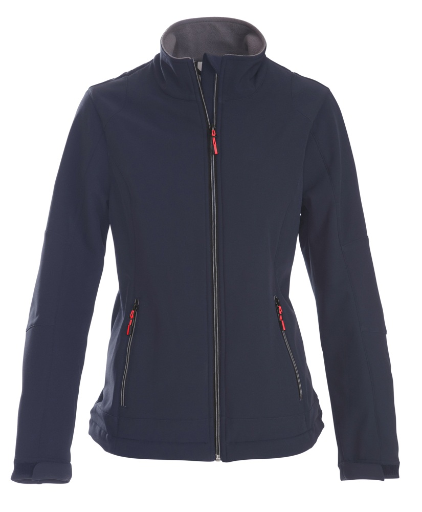 Softshell jas met tweekleurige ritssluiting vooraan en zijzakken met ritssluiting. Aanpasbare mouwen met velcrosluiting en trekkoorden aan de boord onderaan. De zippullers kunnen indien gewenst vervangen worden door één van de andere beschikbare kleuren.