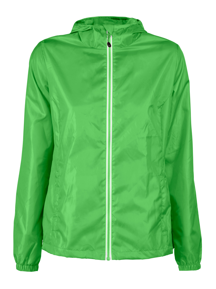 Windbreaker met capuchon voor dames in een waterafstotend materiaal aan de buitenzijde en een warme voering aan de binnenzijde. Contrasterende YKK ritssluiting.