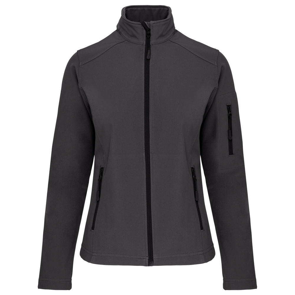 95% polyester / 5% elasthan. Stof in 3 lagen aan elkaar geklit, ademend 3000 g/m2/24H en 8000 mm waterdicht. Buitenkant: 95% polyester / 5% elasthan. Tussenlaag: ademend membraan. Binnenkant: microfleece. Getailleerde snit. Ritssluiting. Zakken met rits aan de voorkant. 1 zak met rits op de linkermouw.