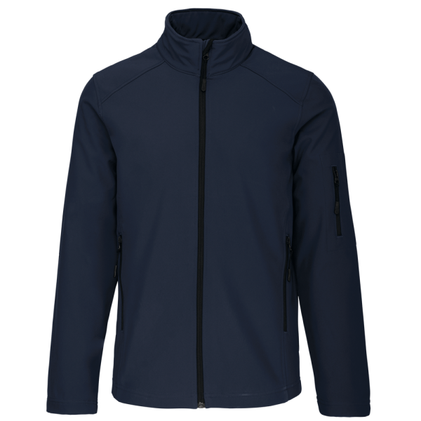 Stof in 3 lagen aan elkaar geklit, ademend 3000 g/m2/24H en 8000 mm waterdicht. Buitenkant: 95% polyester / 5% elasthan. Tussenlaag: ademend membraan. Binnenkant: microfleece. Ritssluiting. Zakken met rits aan de voorkant. 1 zak met rits op de linkermouw.