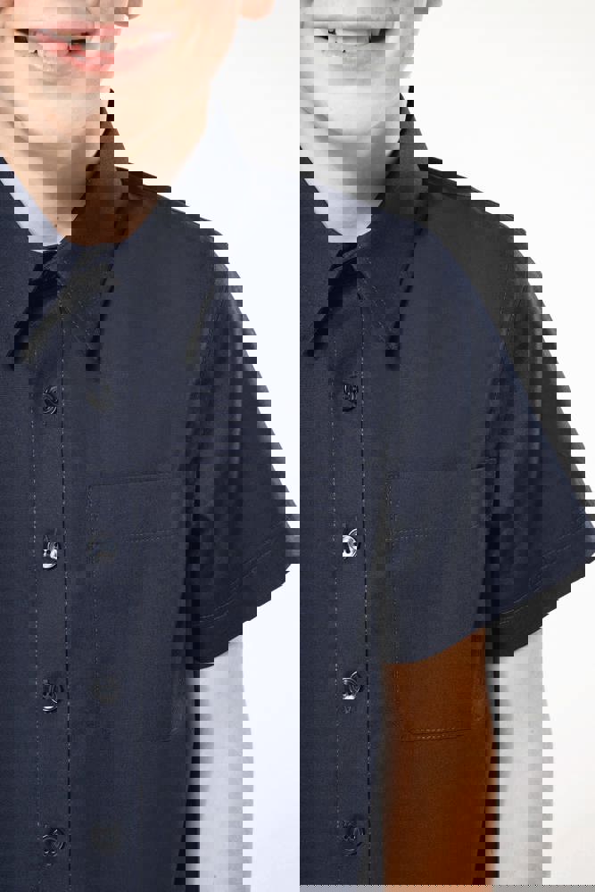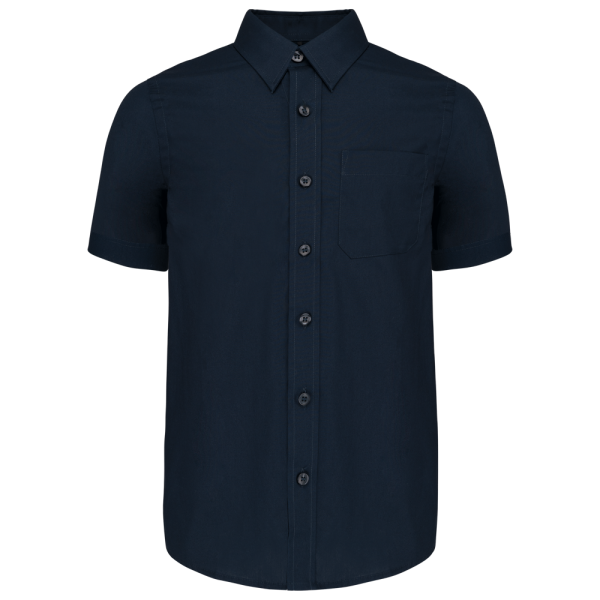 100% katoen. Gemakkelijk in onderhoud ( Easy Care). Verstevigde kraag met baleinen. Toon op toon knopen. Borstzakje. Dubbel inzetstuk op de rug. Afgewerkt met vouwnaden. 1 extra knoop. Afgerond boord aan de onderkant.
