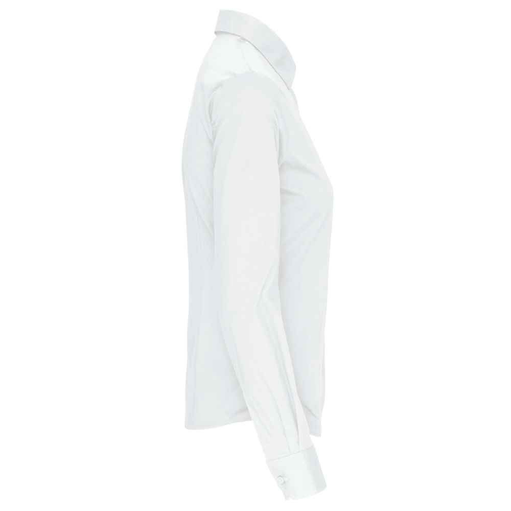 97% katoen / 3% elasthan. Getailleerd overhemd en comfortabele pasvorm. Kraag zonder knopen. Toon op toon knopen. Plooitjes aan de achter- en zijkant. Verstelbare omgeslagen mouwen. 1 extra knoop. Afgerond boord aan de onderkant.