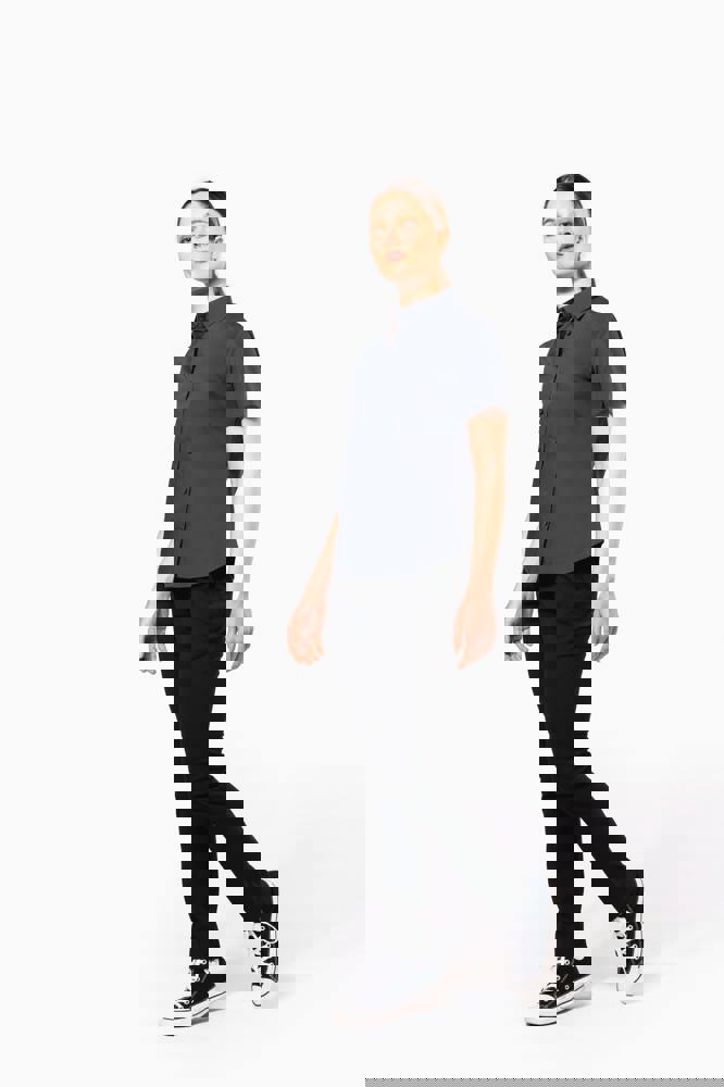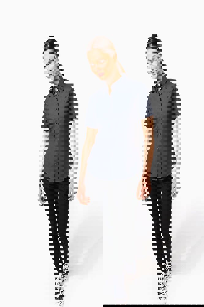 97% katoen / 3% elasthan. Getailleerd overhemd en comfortabele pasvorm. Kraag zonder knopen. Toon op toon knopen. Plooitjes aan de achter- en zijkant. Mouwuiteinden omgezoomd. 1 extra knoop. Afgeronde onderkant.
