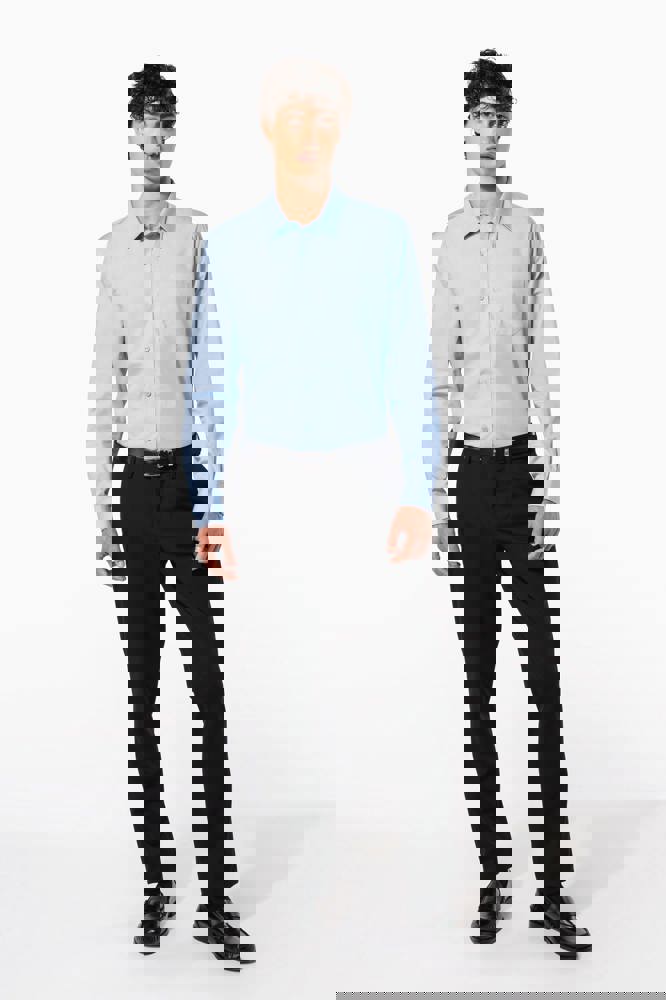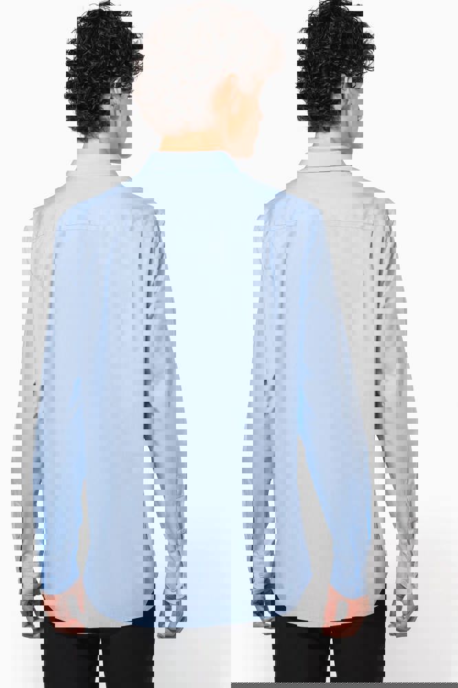 100% popeline katoen. Gemakkelijk in onderhoud (Easy Care). Verstevigde kraag met baleinen. Toon op toon knopen. Borstzakje. Dubbel inzetstuk op de rug en 2 plooitjes. Afgewerkt met dubbele vouwnaden. Verstelbare mouwen. 2 extra knopen. Afgerond boord aan de onderkant.