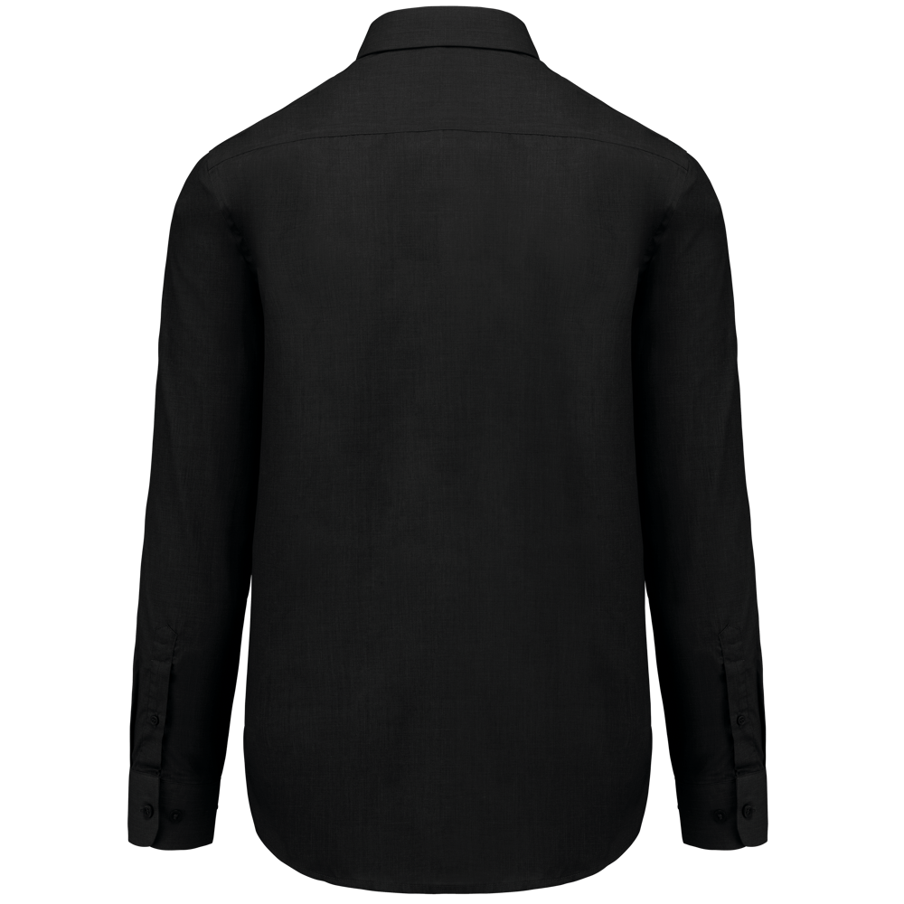 65% polyester / 35% katoen. Gemakkelijk in onderhoud (Easy Care). Verstevigde kraag met baleinen. Toon op toon knopen. Borstzak links met afgeronde hoeken. Dubbel inzetstuk op de rug. Afgewerkt met dubbele vouwnaden. Verstelbare mouwen en mouwuiteinden met afgeronde hoeken en knoop. 2 extra knopen.