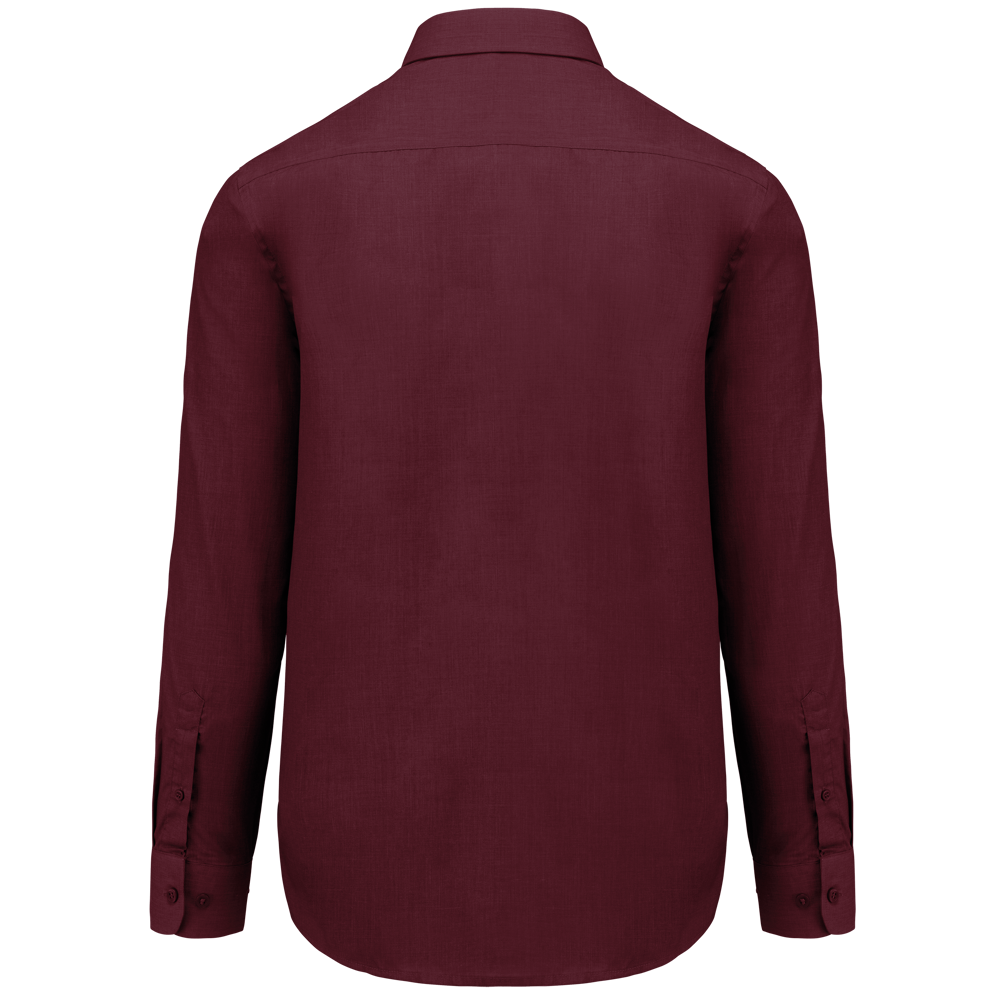 65% polyester / 35% katoen. Gemakkelijk in onderhoud (Easy Care). Verstevigde kraag met baleinen. Toon op toon knopen. Borstzak links met afgeronde hoeken. Dubbel inzetstuk op de rug. Afgewerkt met dubbele vouwnaden. Verstelbare mouwen en mouwuiteinden met afgeronde hoeken en knoop. 2 extra knopen.